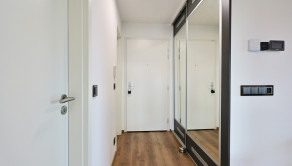 K bytu patrí predzáhradka s bioklimatickou pergolou s naklápateľnými strešnými lamelami a posuvnými sklenenými stenami, vďaka čomu je možné regulovať svetlo, vetranie aj ochranu pred dažďom. Byt je vybavený klimatizáciou v každej obytnej miestnosti, exteriérovými žalúziami na všetkých oknách, alarmom, práčkou so sušičkou, TV a soundbarom. V obývacej izbe aj v spálni sa nachádzajú rozkladacie sedačky.
